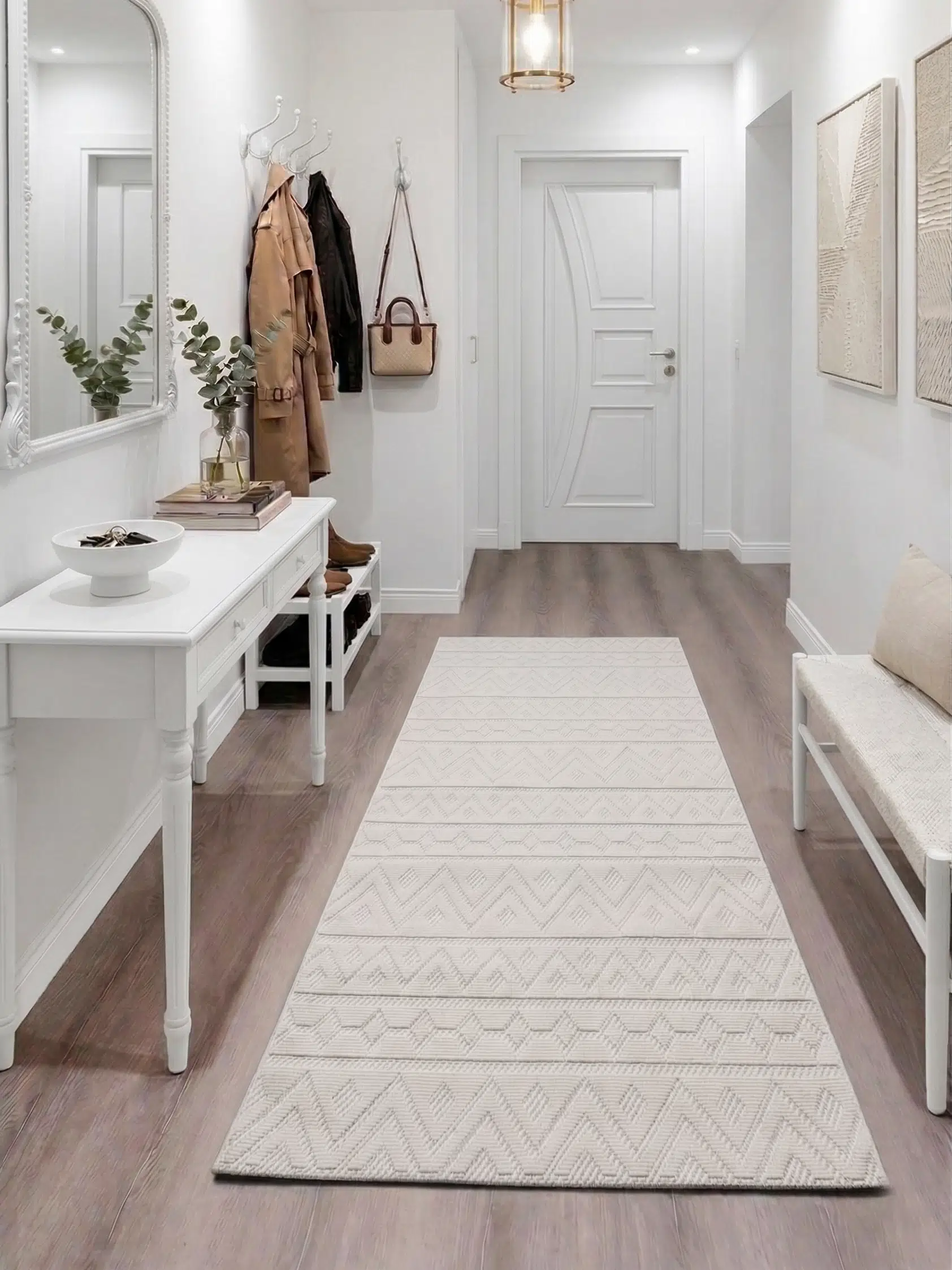 Krem Etnik Desenli Kaymaz Taban Yıkanabilir Halı – Made in Türkiye ??
