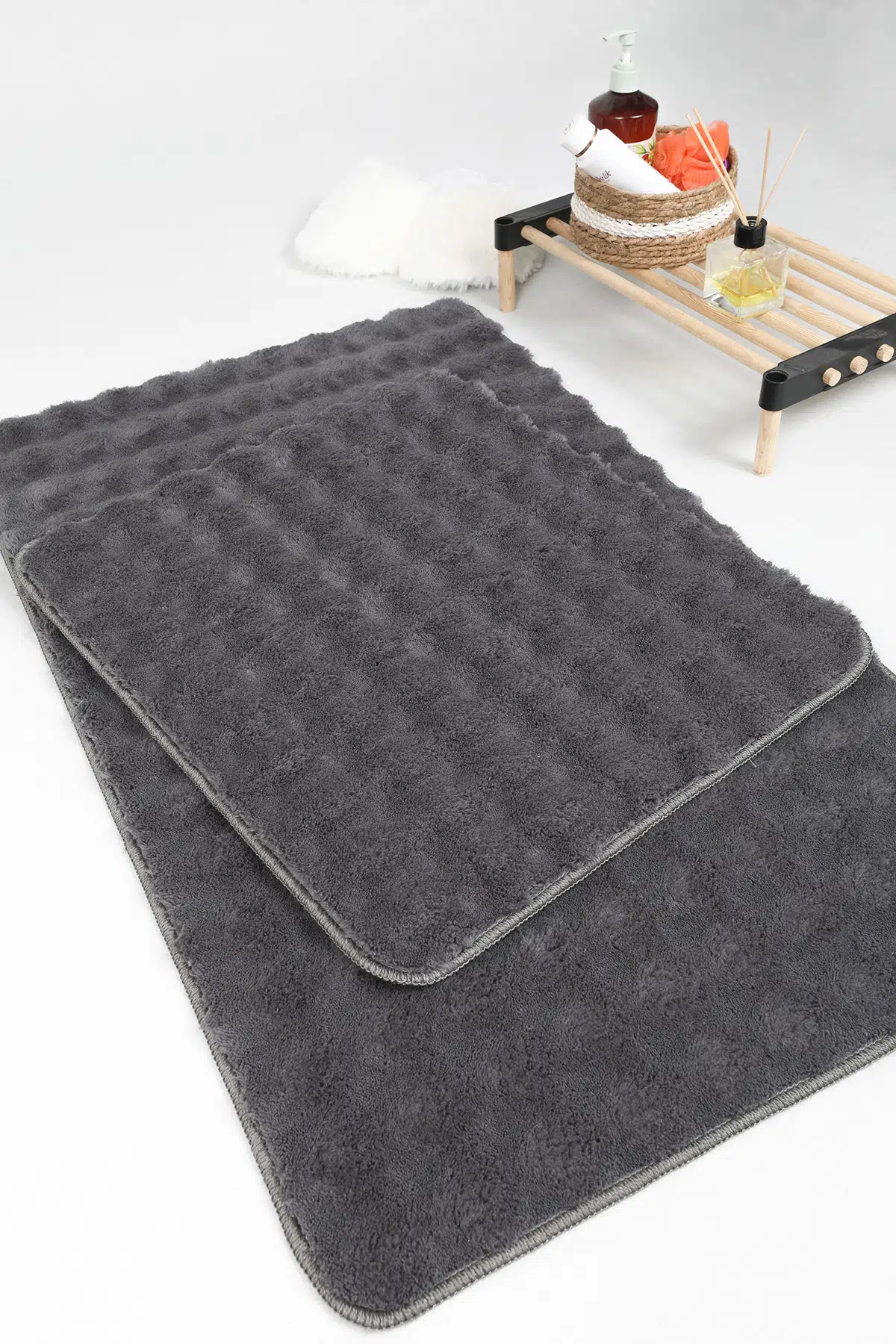 My Evilla Modern Bubble Yıkanabilir Kaymaz Peluş Banyo Paspası Halısı 2'li Klozet Takımı