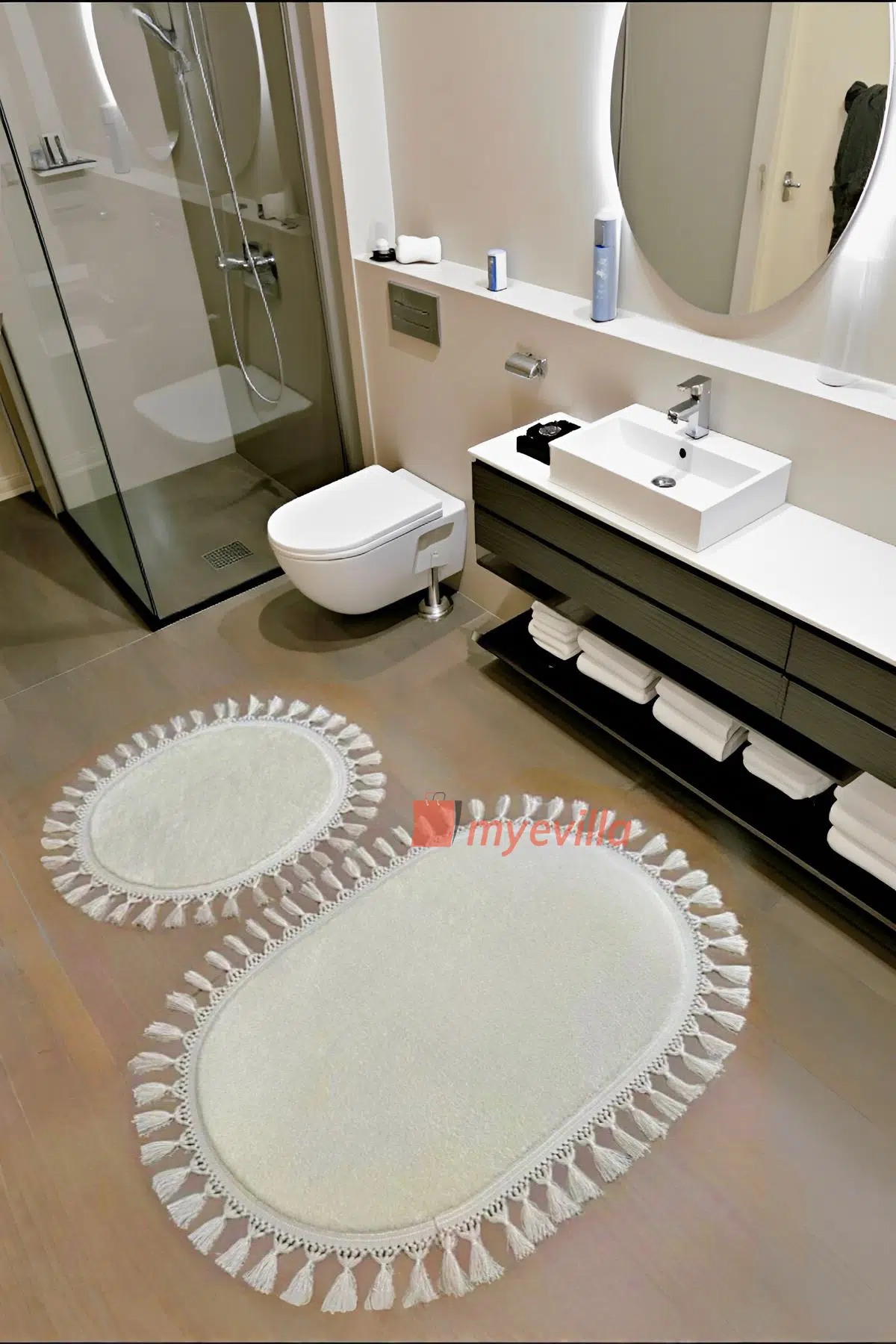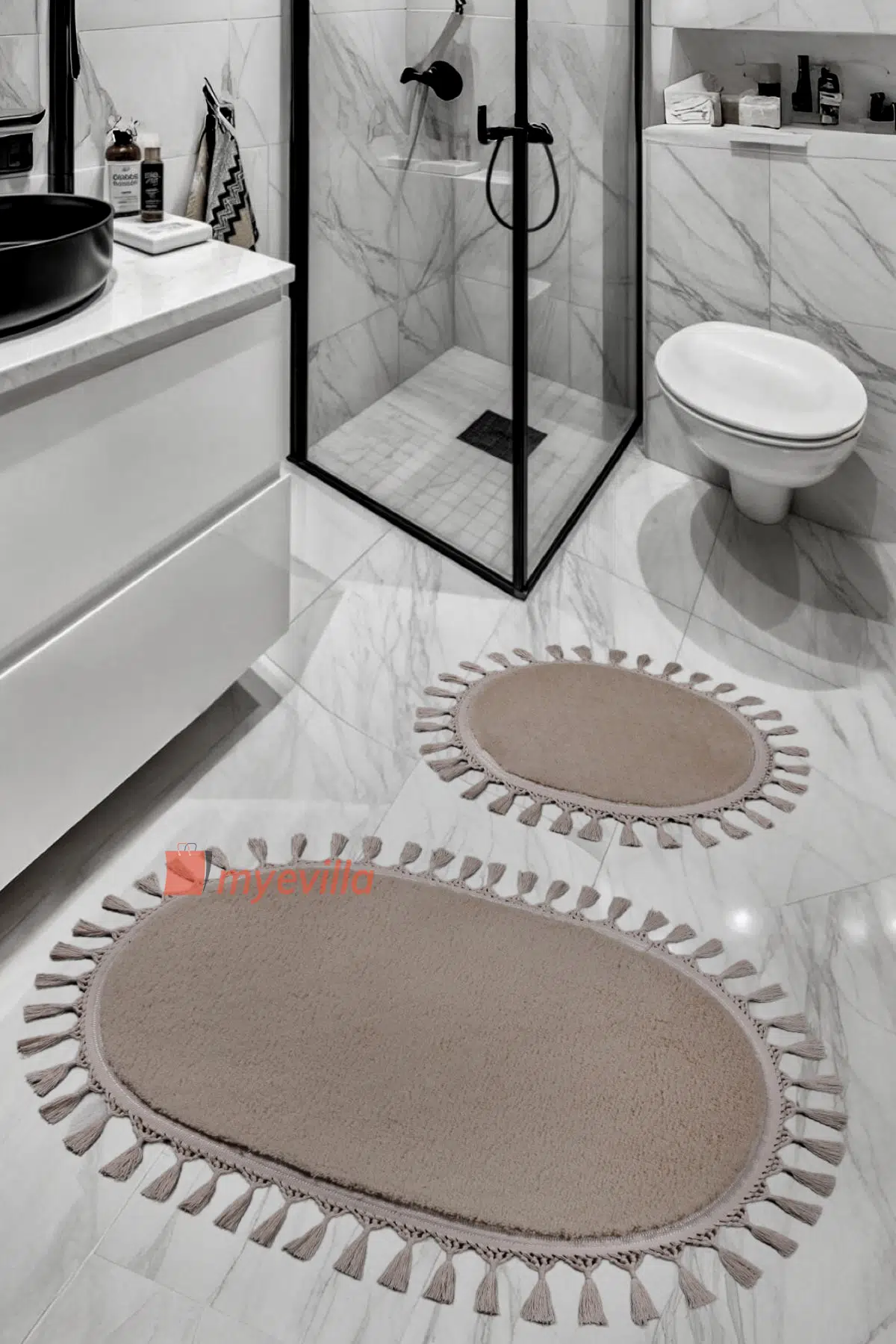 | Etiketler | My Evilla Modern Simirna Dekoratif Peluş Oval 60x100-50x60 Ponpon Saçaklı Klozet Takımı |