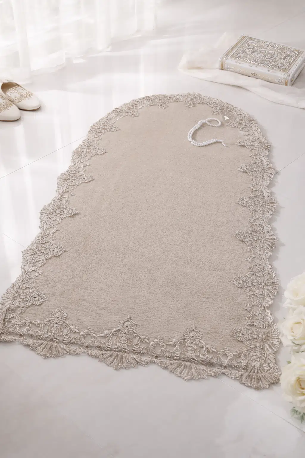 Zarif detayları ve yumuşak dokusuyla ibadetlerinize huzur katan peluş nakışlı seccade, şıklık ve konforu bir arada sunar. Özenle işlenmiş nakışları ve estetik saçak detaylarıyla hem kendiniz hem de sevdikleriniz için ideal bir tercihtir.