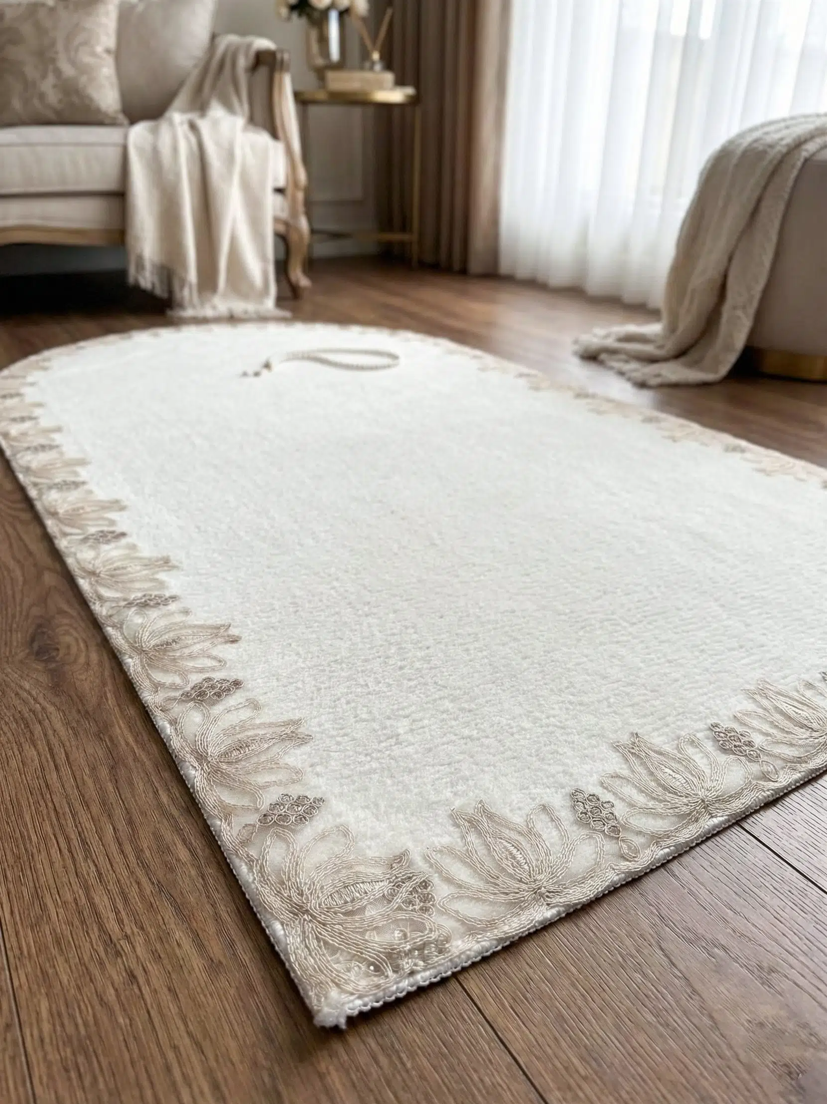 1 Adet Peluş Nakışlı Seccade